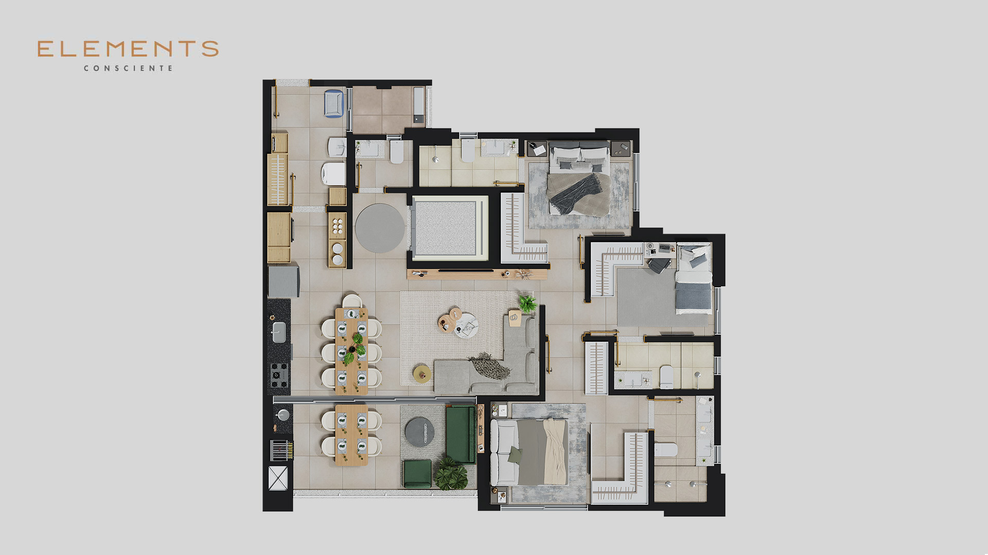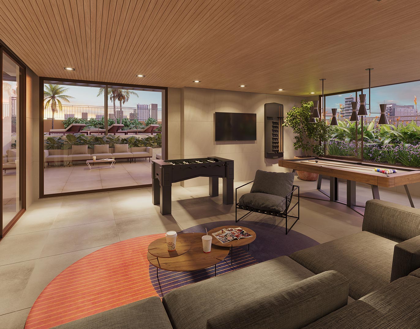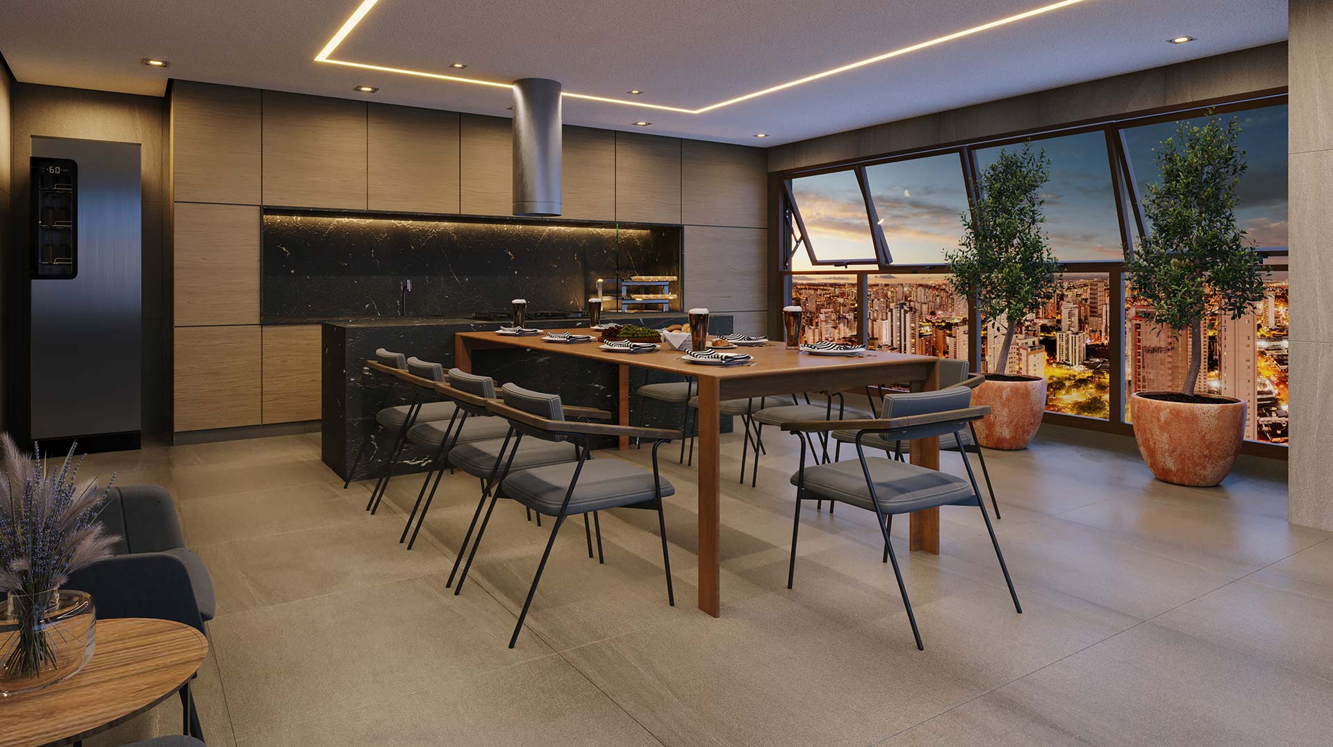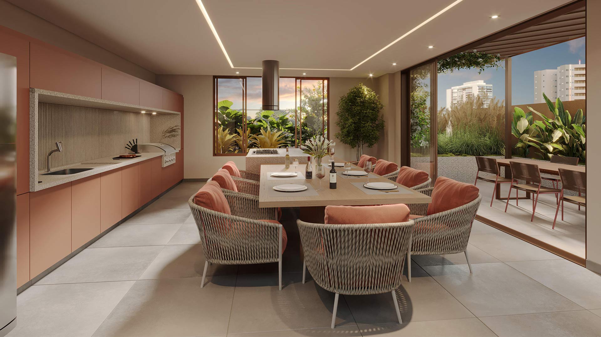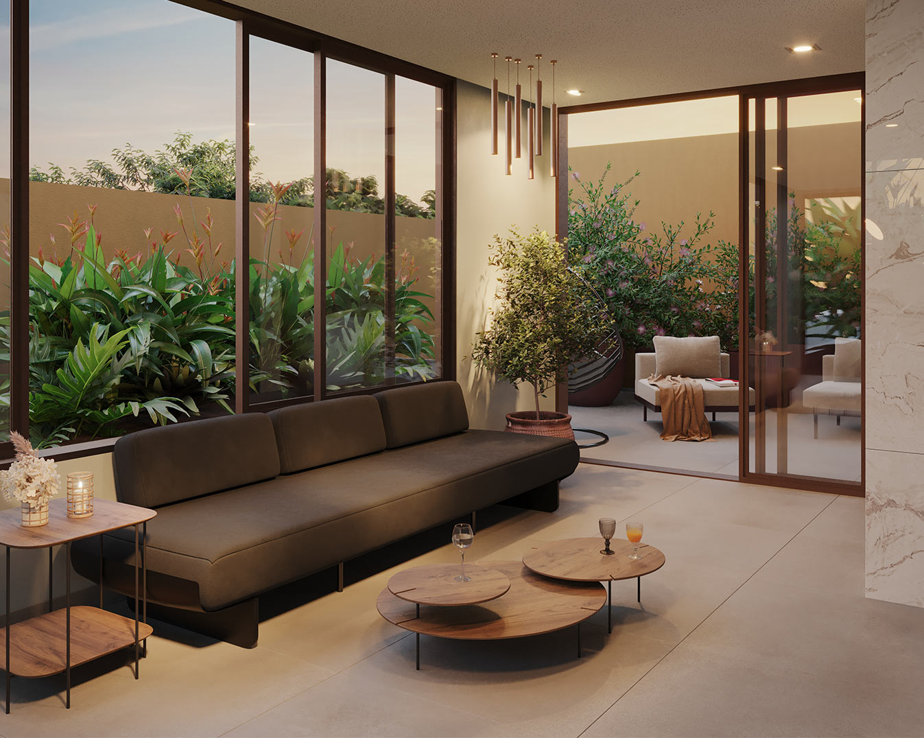 Arquitetura inteligente, rica em personalidade e alto padrão de detalhamento em todos os espaços. Sofisticação que se converte em conforto, funcionalidade e bem-estar. O padrão Consciente em cada detalhe.